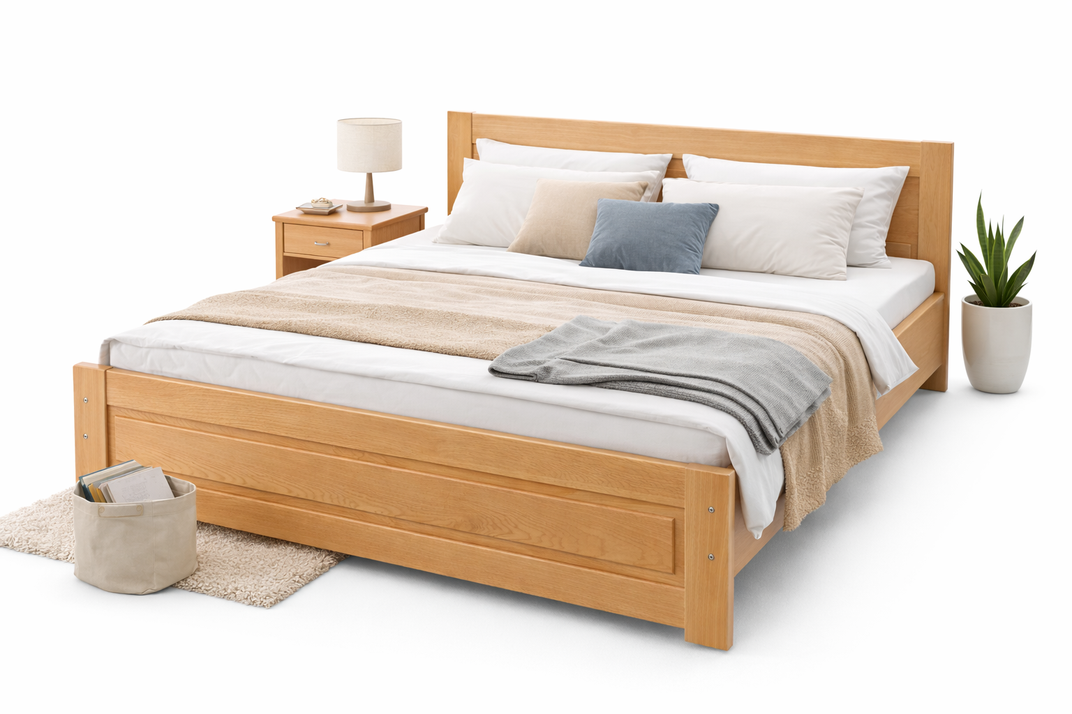 Masivní buk patří mezi nejpevnější dřeviny používané při výrobě postelí. Díky tomu je konstrukce mimořádně stabilní, nevrže a poskytuje dokonalou oporu pro kvalitní spánek.