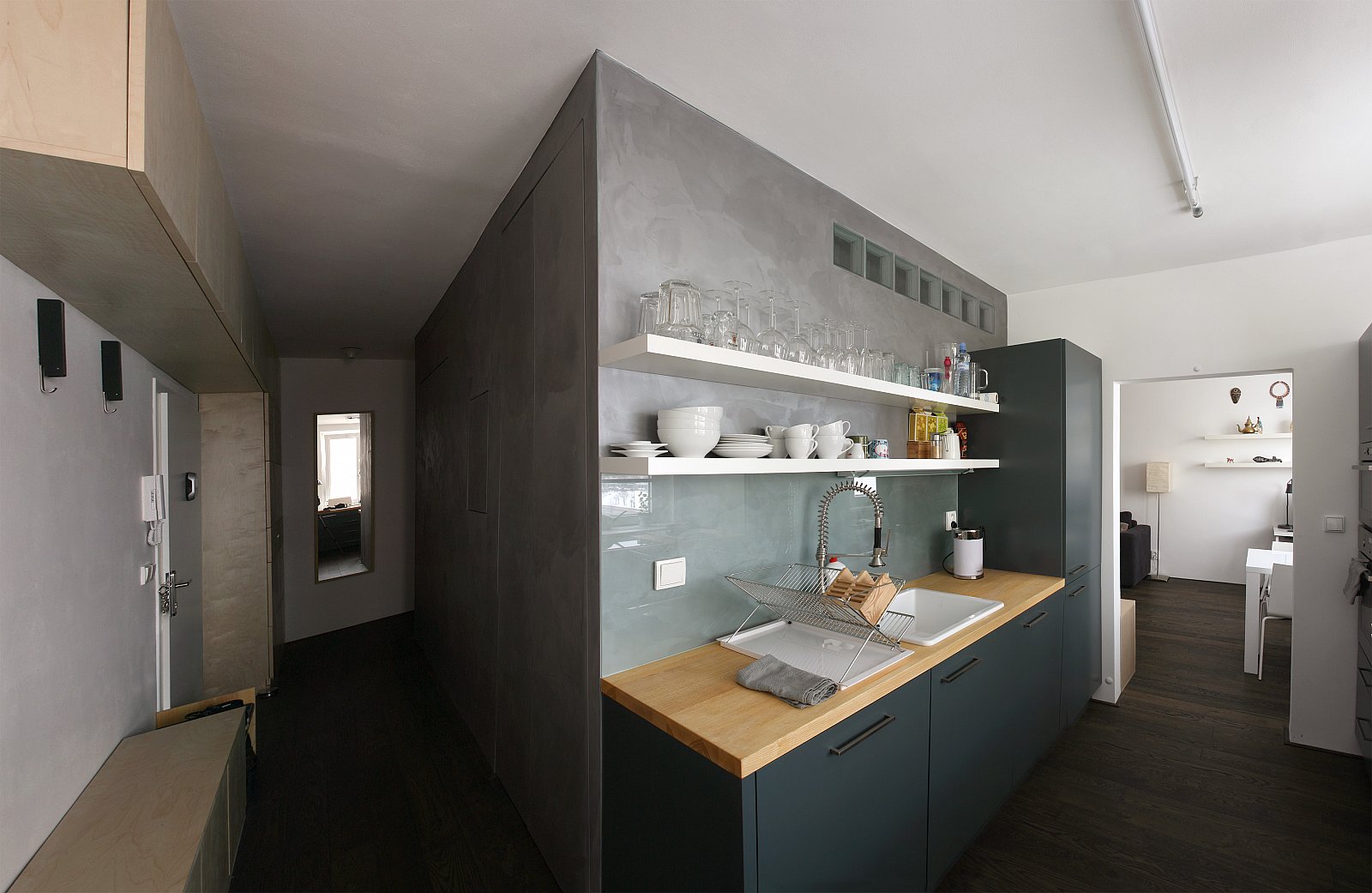 - samonosné bílé police opticky prostor zvětšují